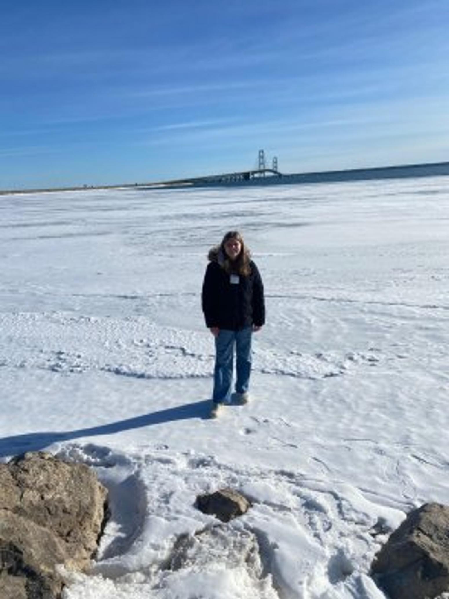 Da das Wetter immer besser wurde und der Schnee langsam Michigan verlassen hat, haben meine Gastfamilie und ich Mitte März einen Tagesausflug zur Upper Peninsula in Michigan gemacht. Die Obere Halbinsel von Michigan ist wirklich Natur pur. Die Halbinsel ist von Lake Michigan, Lake Superior und Lake Huron umgegeben. Um auf die Insel zu kommen, muss man die Mackinac Bridge, die acht Kilometer lang ist, überqueren. Als wir dort oben waren, war das Wasser auch noch teilweise gefroren, und man konnte noch Eisschollen auf dem Wasser sehen.